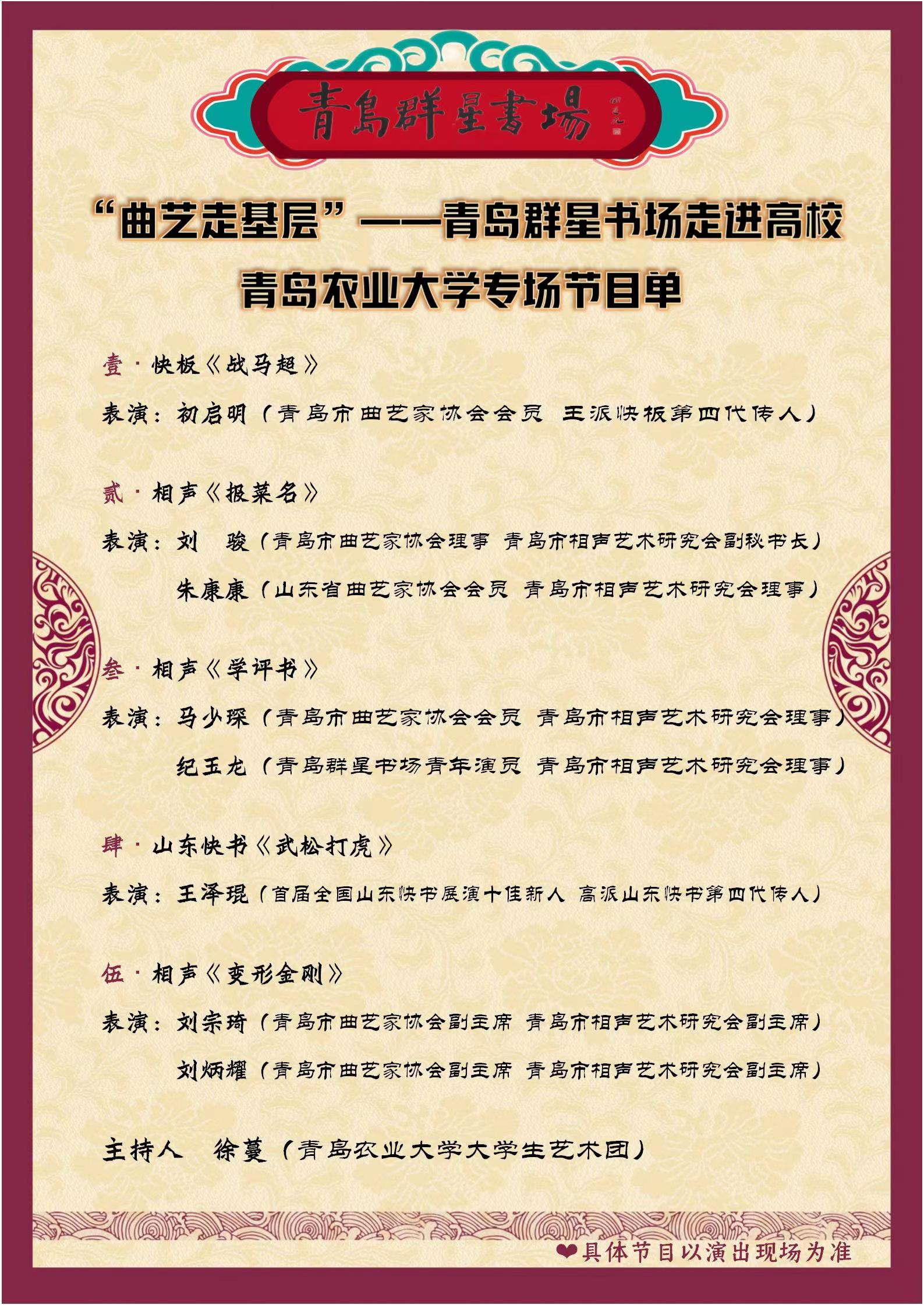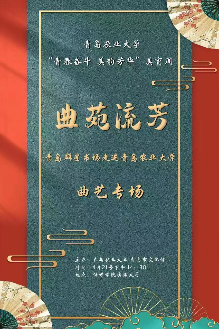 关于开展青岛农业大学“青春奋斗 美韵芳华”美育周 曲苑流芳 青岛群星书场走进青岛农业大学活动的通知