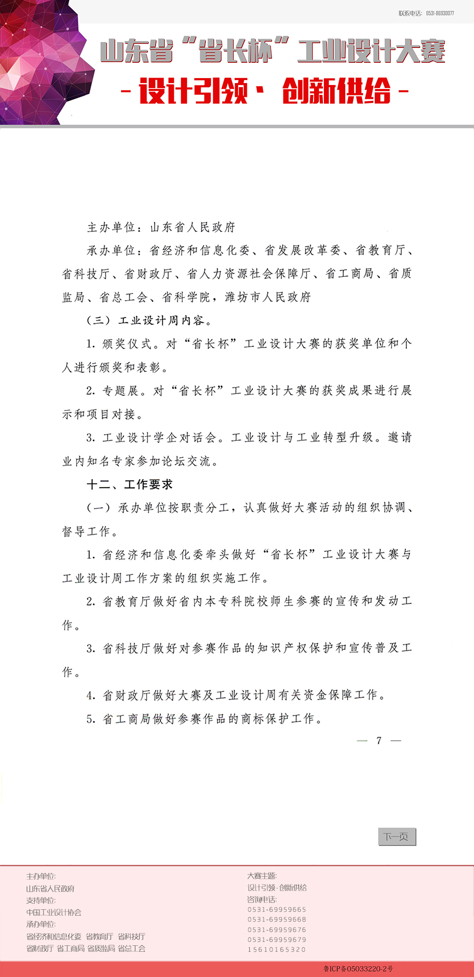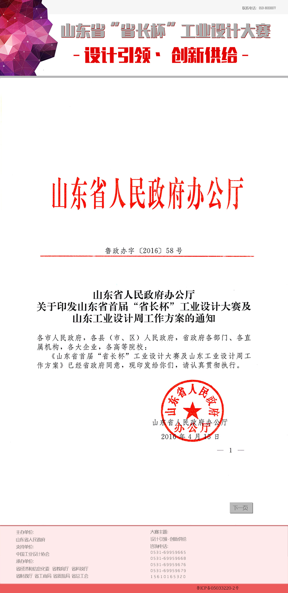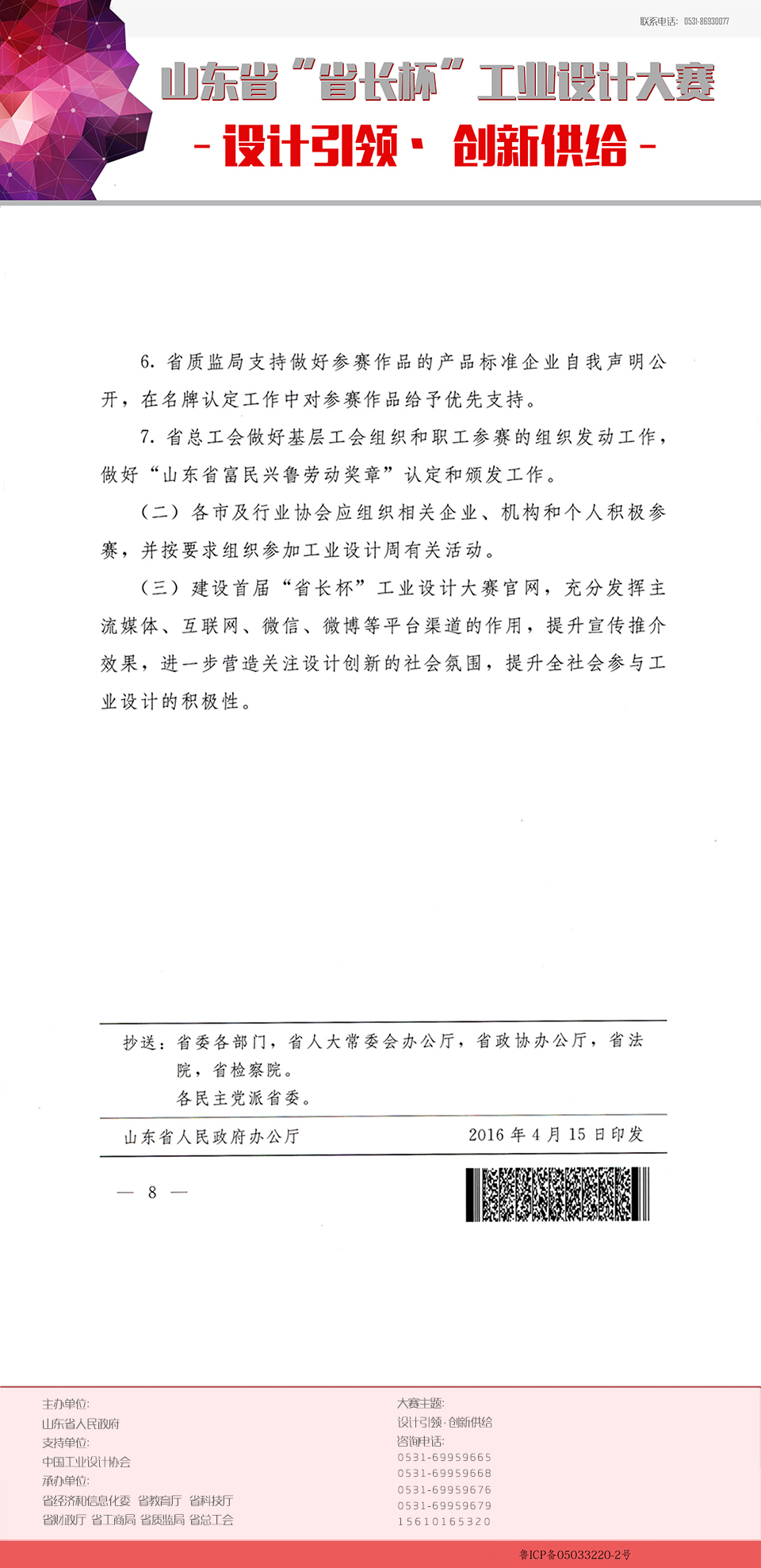 【转发】《山东省首届“省长杯”工业设计大赛及山东工业设计周工作方案》