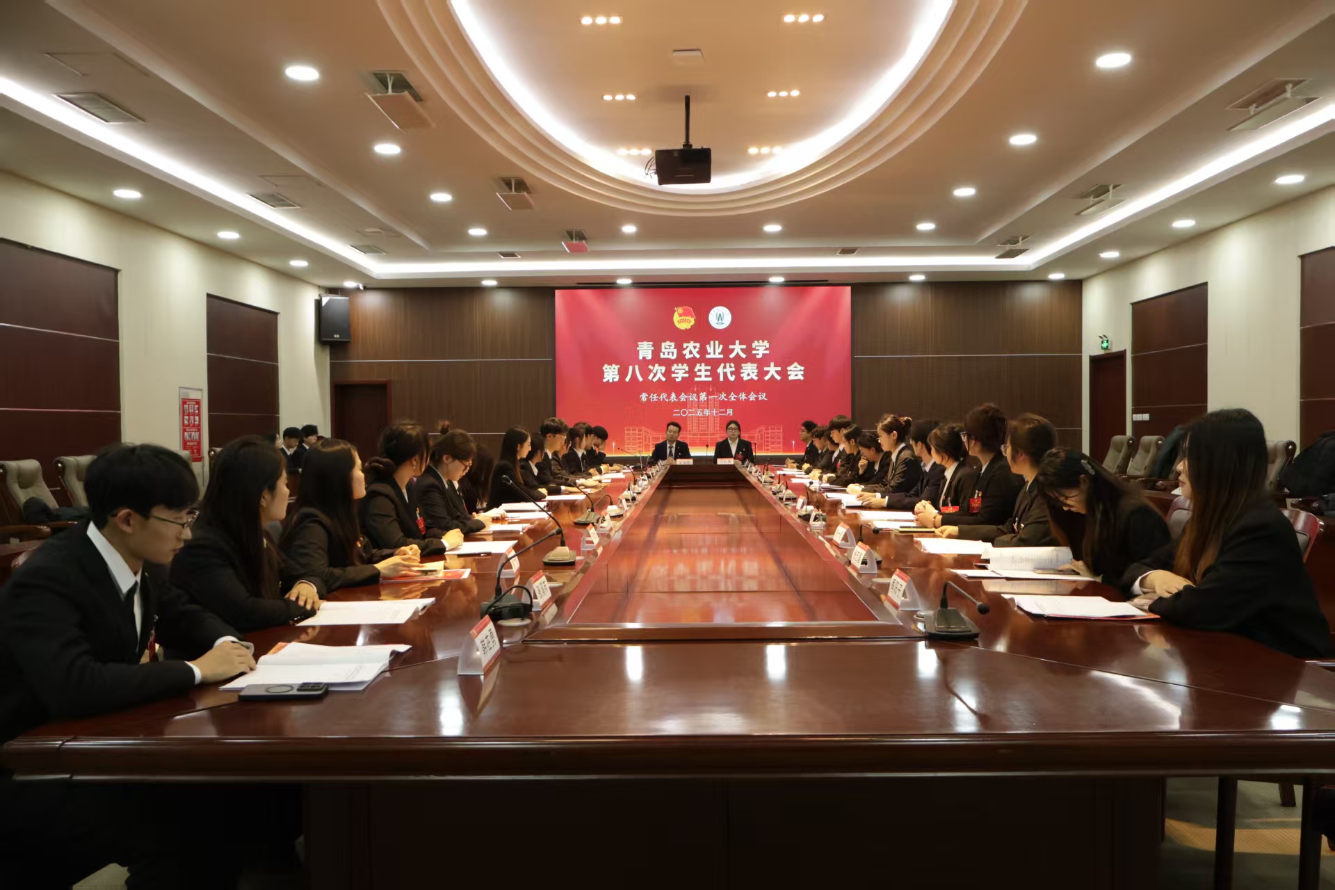 全体常任代表召开了常任代表会议第一次会议。安金鹏被聘任为青岛农业大学第八届学生会秘书长。新当选主席团执行主席马牧青表示,将加强政治锻造,使思想引领更有深度;突出组织优势,使工作落实更加有力;心系同学需求,使服务同学更显温度,表示新一届学生会将在实践中磨砺,在奉献中成长,于新征程的奋进舞台上展现担当、锐意进取,成长为可堪大用、能担重任的先锋力量。