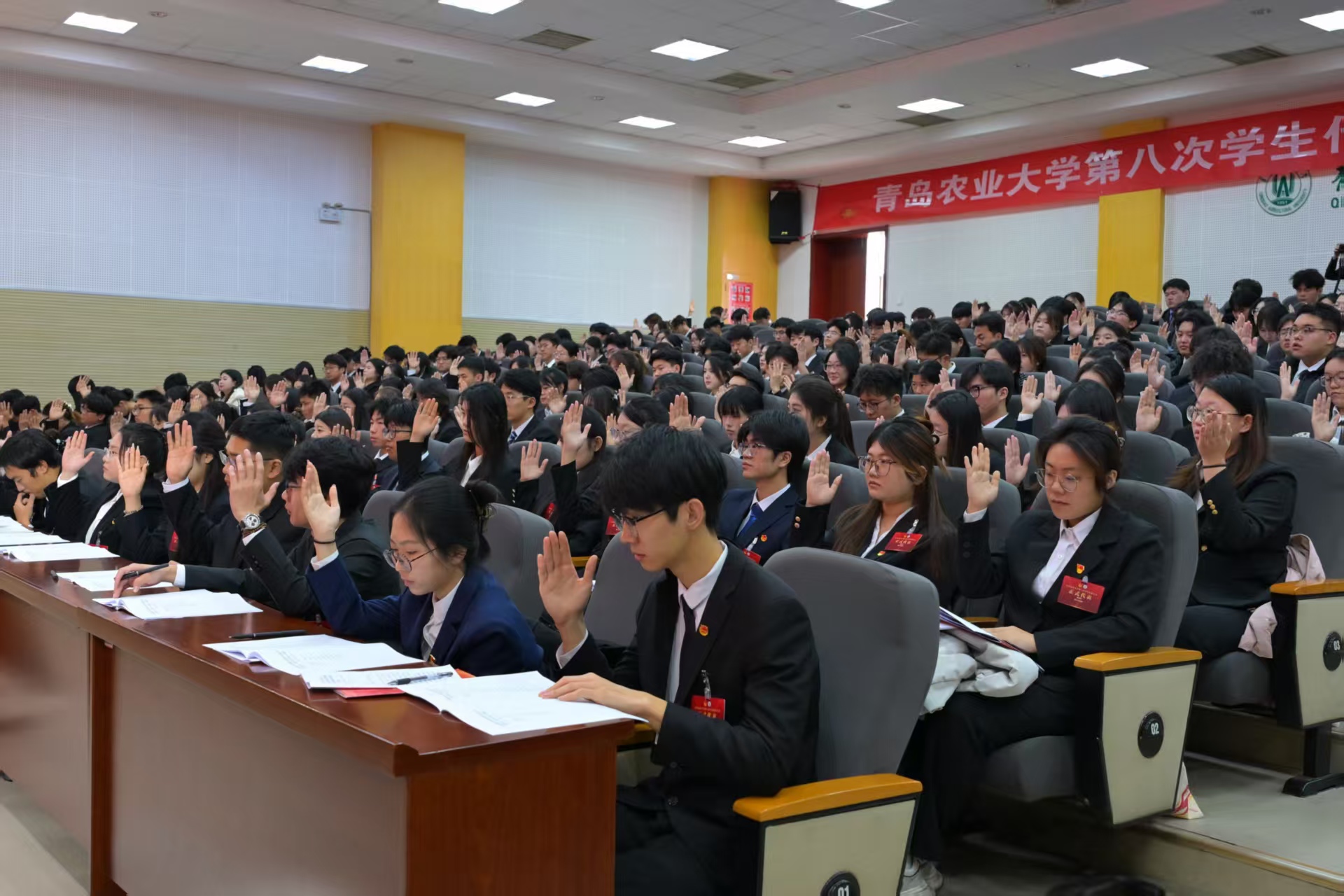 12月26日至27日,青岛农业大学第八次学生代表大会、第六次研究生代表大会在城阳校区学术会馆胜利召开。校党委副书记田义轲,校党委委员、宣传部部长王峰出席大会开幕式,组织部、学生工作处、研究生处、校团委相关负责同志,各学院团委书记,来自21个学院的311名本科生代表和69名研究生代表参加。全体代表履职尽责,为学校发展建言献策,为广大同学发声代言,圆满完成会议各项议程,凝聚青春智慧,共绘美好蓝图。