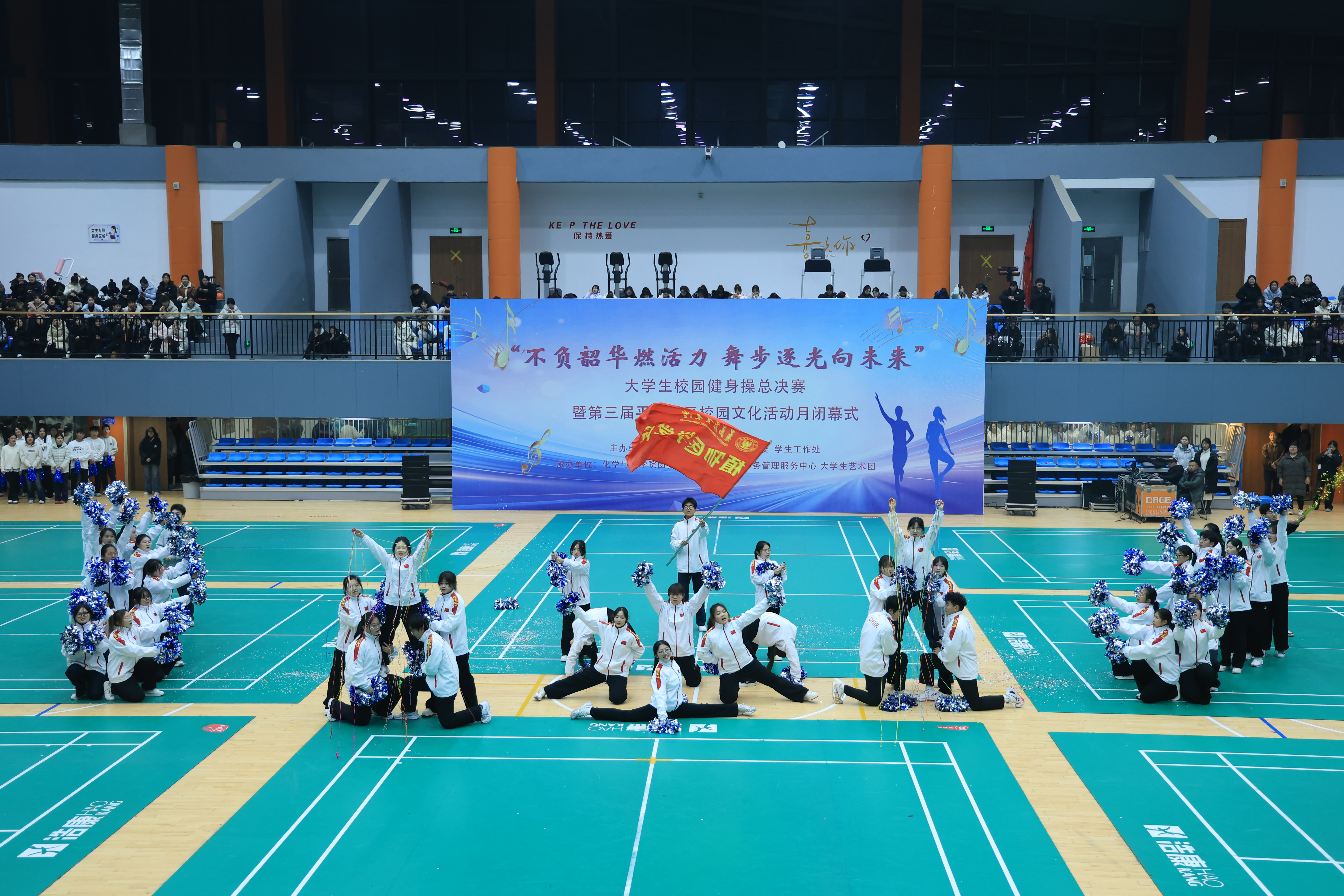 决赛现场座无虚席,各学院健身操参赛队伍朝气蓬勃、活力四射、轻盈矫健。他们用协调统一成就力量的美感,用灵动表演展现青春的活力。为席上观众呈现了一场视觉盛宴,更彰显出了我校学子积极向上、青春昂扬的精神风貌。比赛经过激烈角逐,化学与药学院、人文社会科学学院参赛队伍荣获一等奖,经济管理学院(合作社学院)、植物医学学院、园林与林学院参赛队伍荣获二等奖,农学院、艺术学院、 理学与信息科学学院、动漫与传媒学院、动物医学院参赛队伍荣获三等奖。