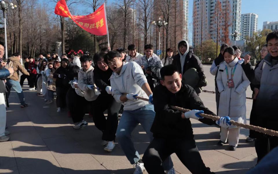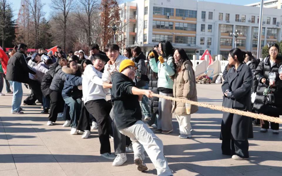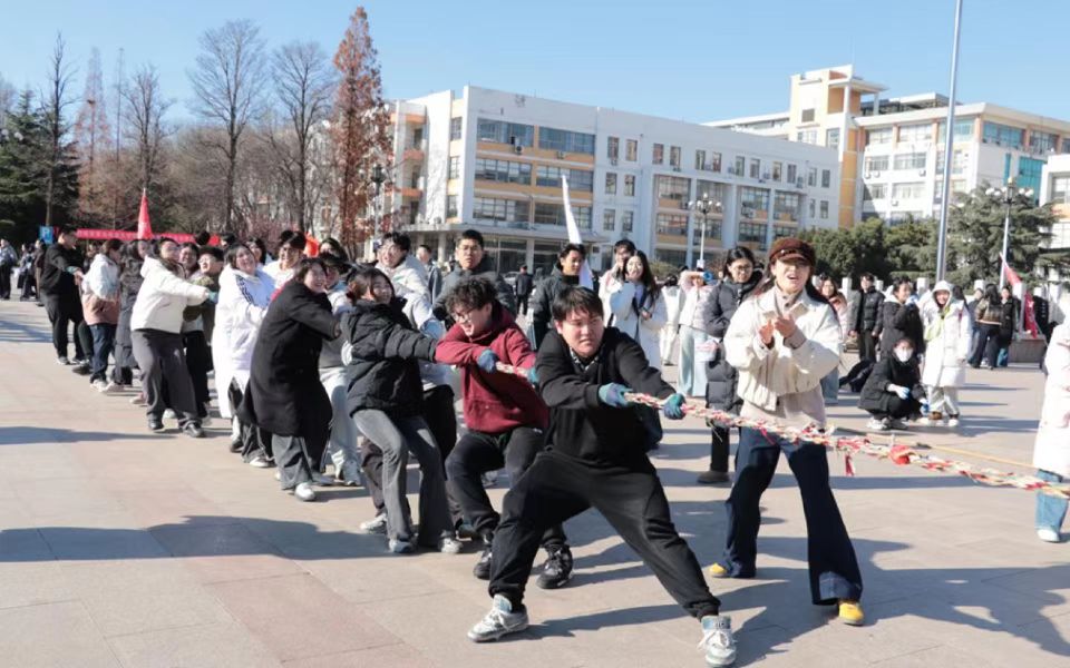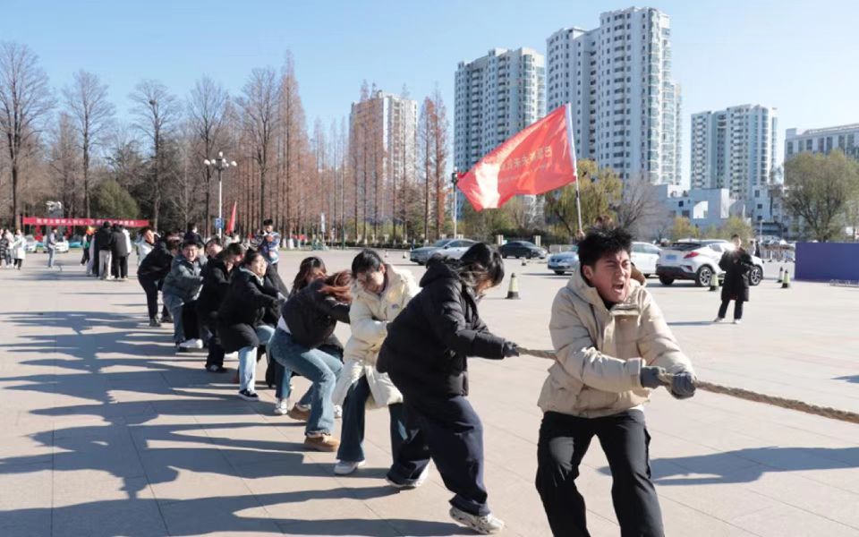 为纪念“一二·九”运动90周年,弘扬爱国主义精神,进一步彰显新时代大学生团结奋斗、积极进取的精神风貌,增强学生干部队伍的集体凝聚力与向心力,12月5日,校团委于城阳校区虹子广场组织开展第九届“青凝杯”学生干部拔河比赛。团属学生组织及各学院学生骨干积极参加,在拼搏协作中传承红色基因,展现青春风采。