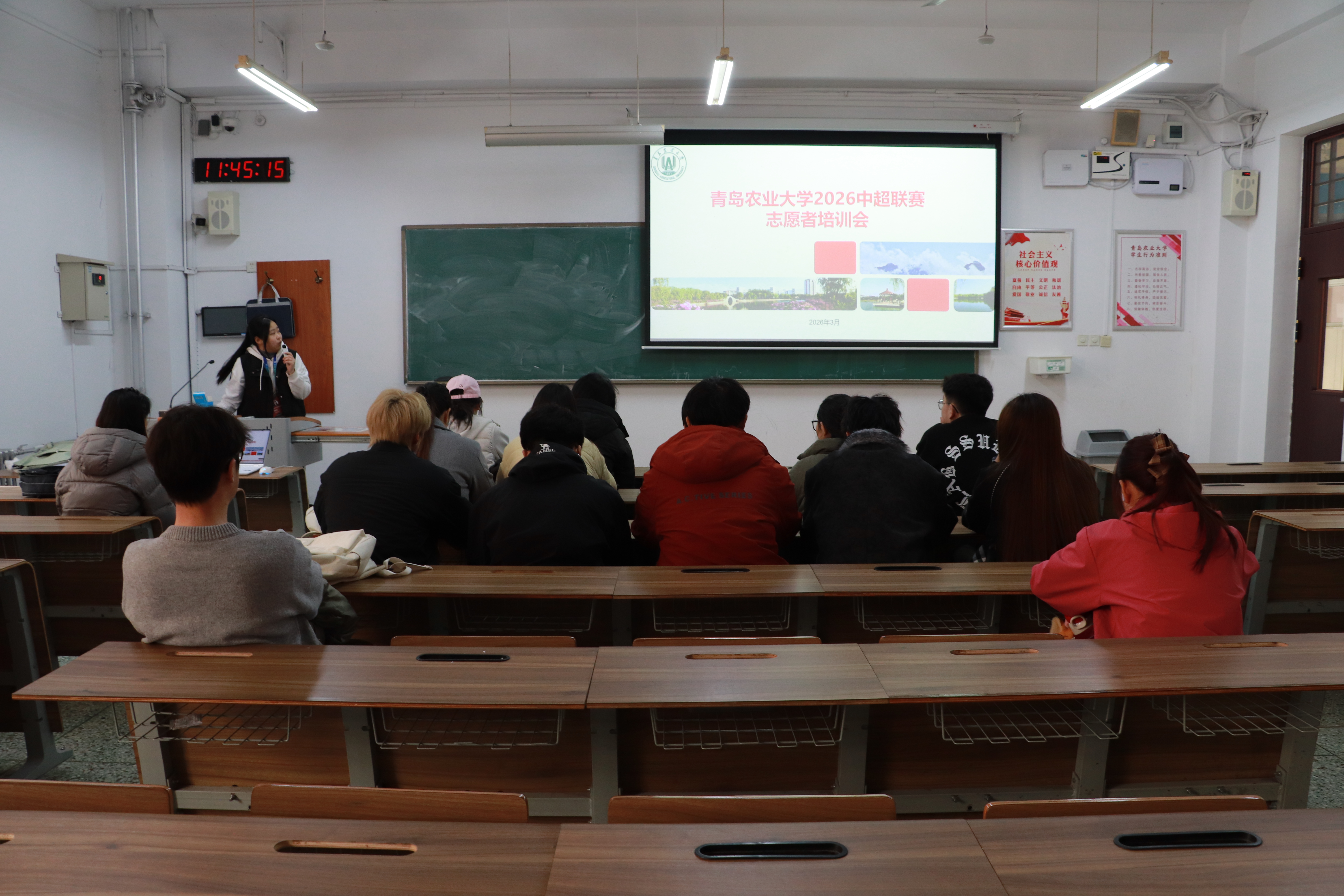 3月20日,2026赛季中国足球协会超级联赛青岛赛区比赛在青春足球场火热开赛,青岛海牛队主场迎战浙江队。为营造文明、有序、热情的观赛环境,校团委联合青岛文明网、半岛网,精心遴选多名学生组建志愿服务团队,全程参与赛事文明引导工作,以专业素养和青春担当助力赛事顺利举行,充分展现青农学子的责任与担当。