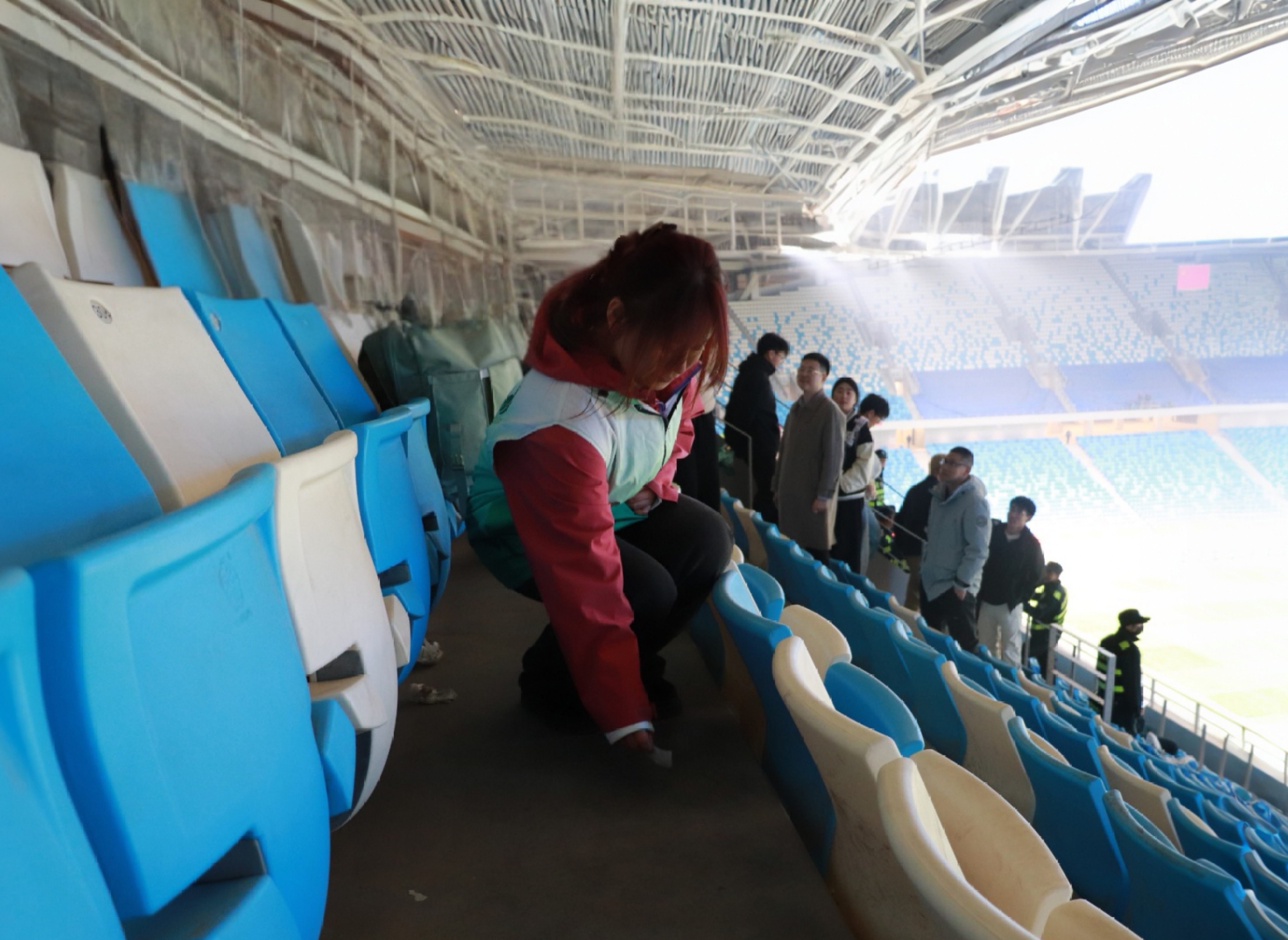 活动当天,志愿者统一着装、分工协作,在多个服务点位高效开展工作。在主场入口处,志愿者组织球迷在足球造型签名墙上郑重签下“文明观赛,从我做起”的承诺,以仪式感强化责任意识;在“绿茵文明汇”互动区,通过趣味游戏引导观众用足球“踢走”乱扔垃圾、投掷物品等不文明行为,寓教于乐传递观赛礼仪;在“文明有礼青岛人”宣传点,志愿者通过派发文明贴纸、开展快问快答等方式,与球迷亲切互动,普及文明观赛知识。赛后,志愿者主动清理看台及周边区域垃圾,用实际行动守护赛场整洁。
