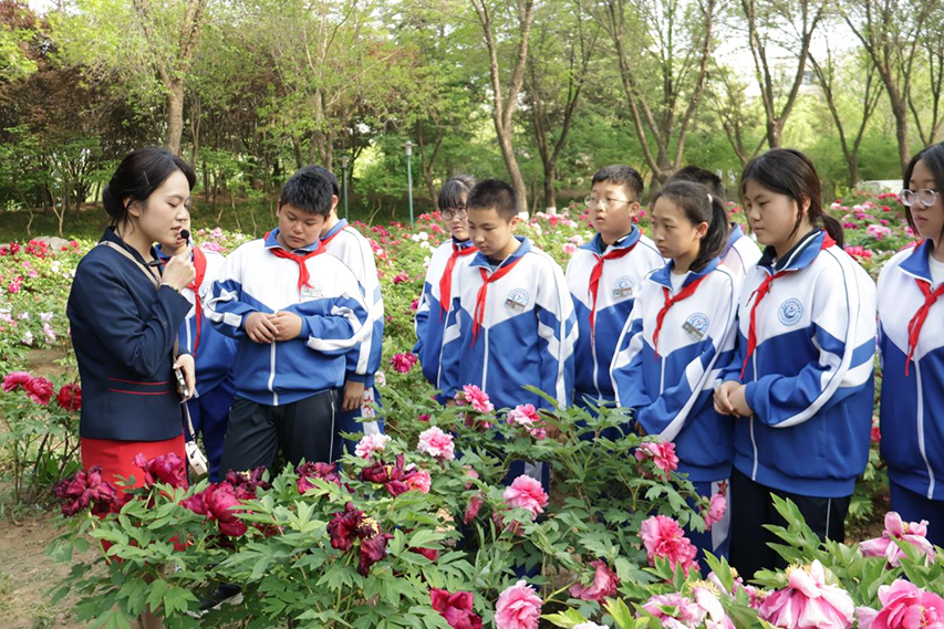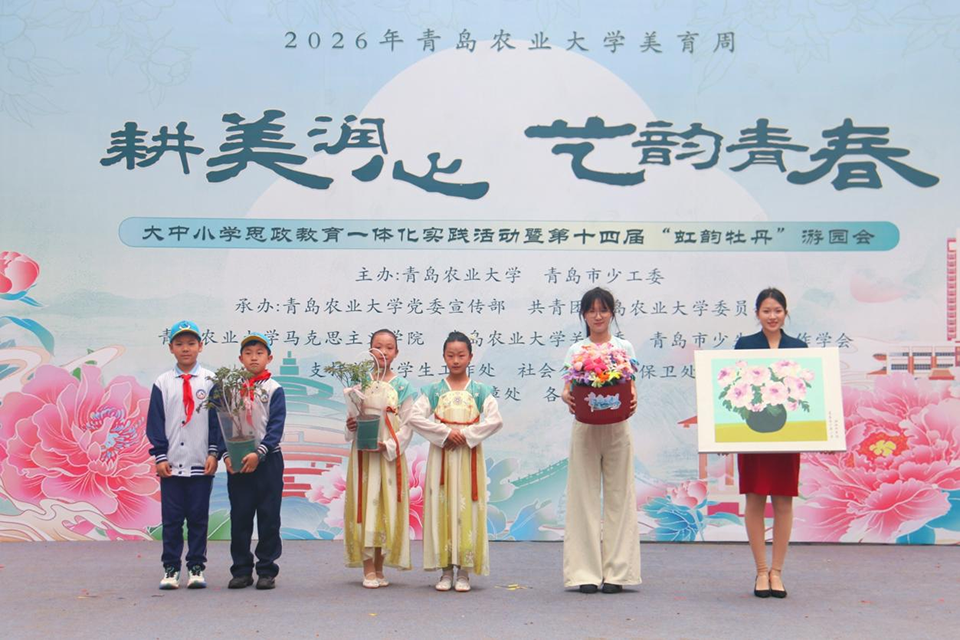 春和景明,牡丹盛放。4月17日,青岛农业大学联合青岛市少工委,在鼎盛花园举办“耕美润心 艺韵青春”大中小学思政教育一体化实践活动暨第十四届“虹韵牡丹”游园会。来自青岛市多所中小学的800余名师生走进校园,与我校师生共赴一场融合红色传承、文化浸润、农业科普于一体的“大思政课”。校领导刘春霞、田义轲、陈相艳、郭尚敬、王峰、赵龙刚来到现场,与师生共赏国色天香,品文化盛宴。青岛市少先队总辅导员、青岛市少先队工作学会会长胡晓妍及相关区市团委学少部负责人、少先队总辅导员共同参与。