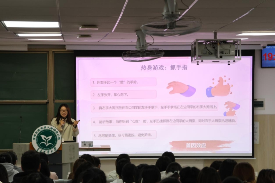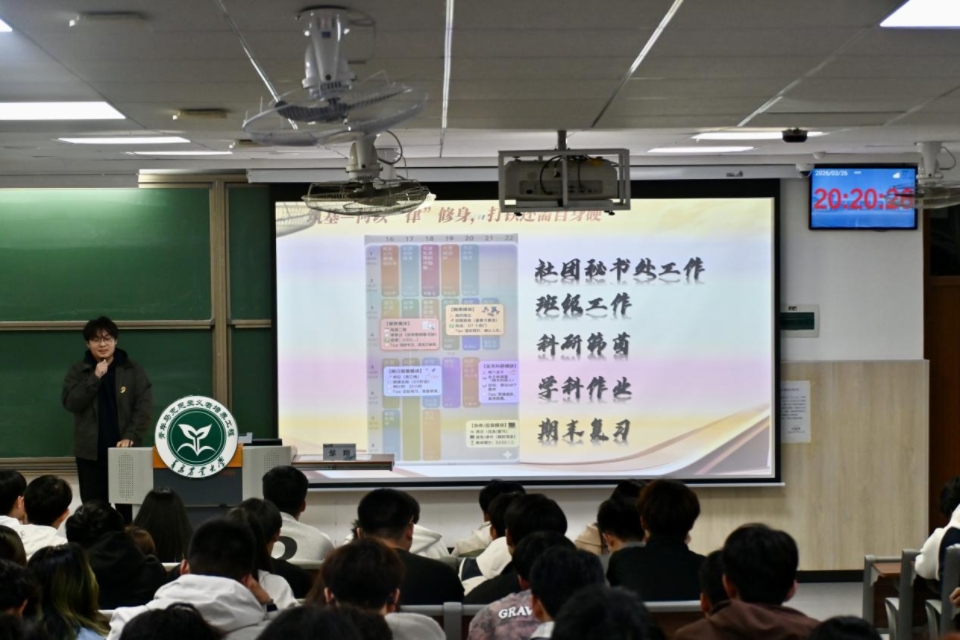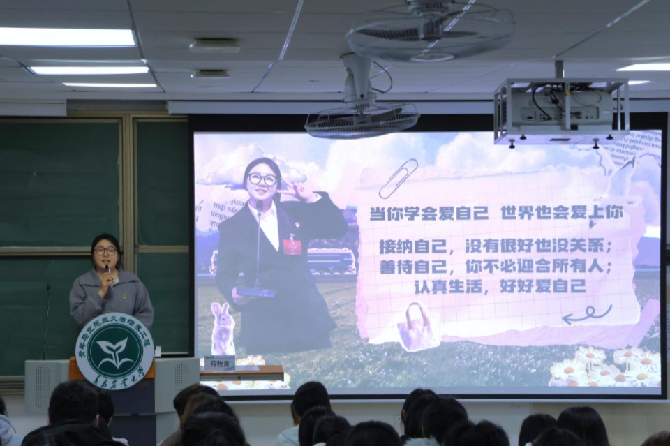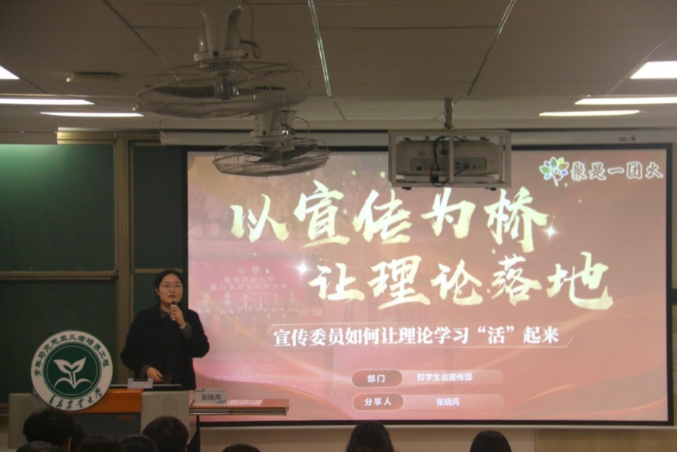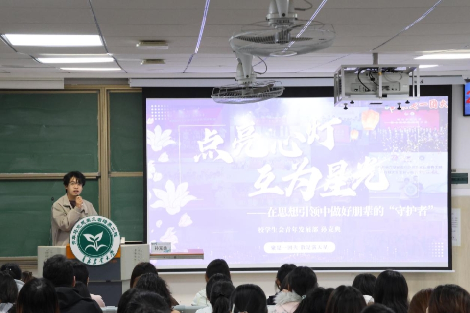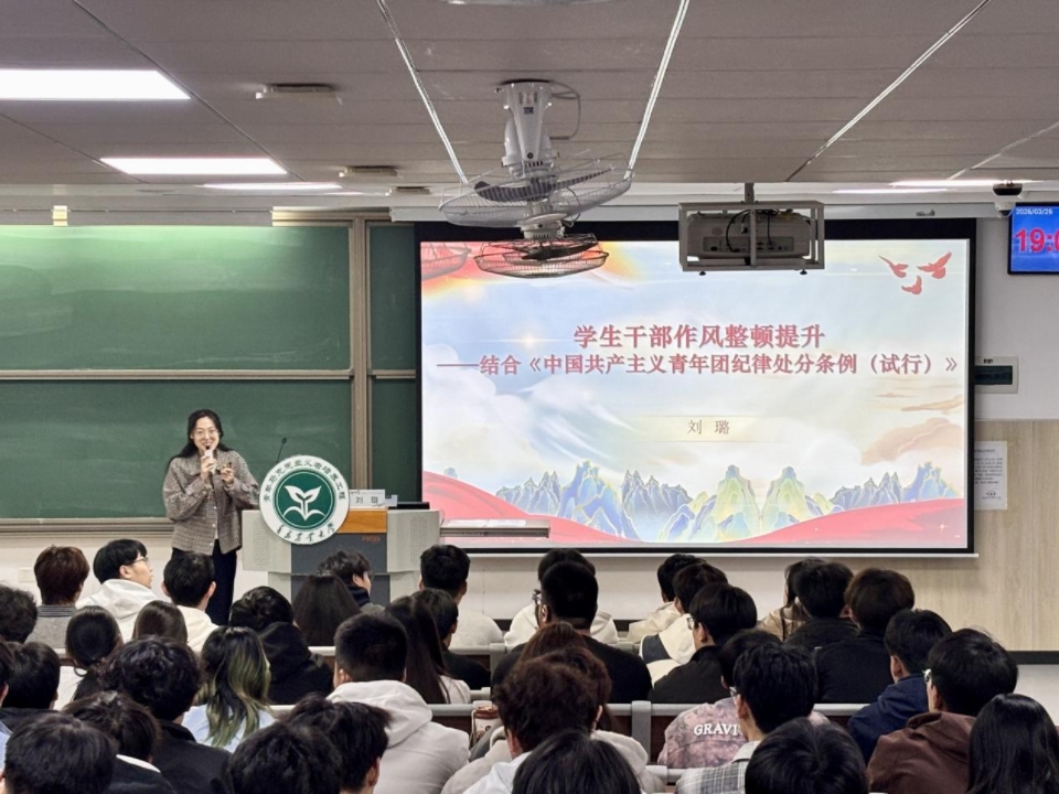 校团委“青马工程”建设中心(教师)主任、巴瑟斯未来农业科技学院团委书记刘璐以《学生干部作风提升--结合中国共产主义青年团纪律处分条例(试行)》为题,系统阐述了学生干部作风建设的重要意义;校团委挂职副书记,化学与药学院辅导员胡勋涛围绕《“青春赋能·实践育人”——青岛农业大学社区实践工作汇报》主题,全面梳理了我校实践工作的成果与经验,结合实际案例、为今后实践工作的深入开展提供了借鉴;经济管理学院辅导员黄堃聚焦团干部和团员个体的成长,强调了团支部在思想引领、组织凝聚和实践育人中的基础作用,并结合案例分享了如何推动团员在服务与奉献中实现全面发展。校学生心理发展指导中心教师宋倩以《“‘心’生活‘心’相印,大学生心理健康”》为题,为在场学生干部提供了开展心理健康工作的专业方法与实用路径;理学与信息科学学院辅导员李倩带来《高校学生团干部新媒体素养的培育与提升》,结合当下新媒体发展趋势、分享如何在信息时代提升自身网络素养、更好服务团学工作。