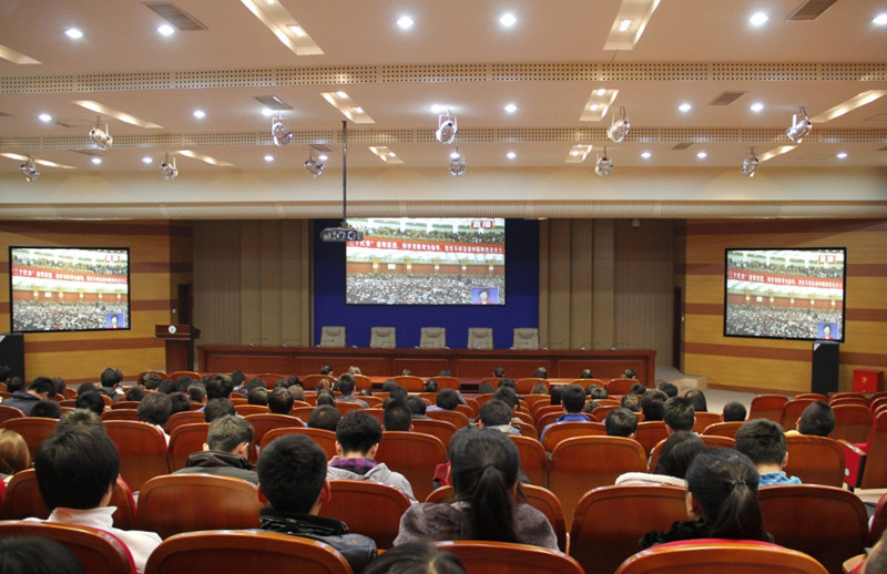 11月8日,校团委组织各学院学生代表在学术会馆第一报告厅观看中国共产党第十八次全国代表大会开幕式直播,校团委副书记王峰及各部部长与来自各学院的百名学生一起,认真聆听了胡锦涛同志的报告。收看过程中,学生们认真聆听,记录笔记,领悟会议精神。大家表示,十八大的召开令人振奋,备受鼓舞,决心以更加饱满的热情投身到今后的学习工作当中。