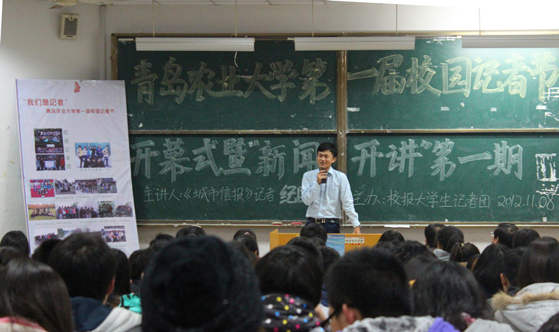 青岛农业大学第一届校园记者节,由校报大学生记者团主办,校学生会、社联和各学院学生记者团协办,在11月8日第十三个记者节来临之际举行。希望通过一系列活动的举办,加强学生记者之间的沟通与联络,提高全体学生记者的业务能力和工作水平,营造良好的氛围,推动校园文化进一步丰富和发展。接下来,为期一个月的校园记者节将在学校开展主题征文、记者图片展、新闻记者座谈会、校报记者校外实习经验交流会等一系列活动。校园记者节将作为一项常设的文化活动,于每年记者节期间连续开展,争取打造成为我校一项高质量、有特色、有影响的校园文化特色品牌。