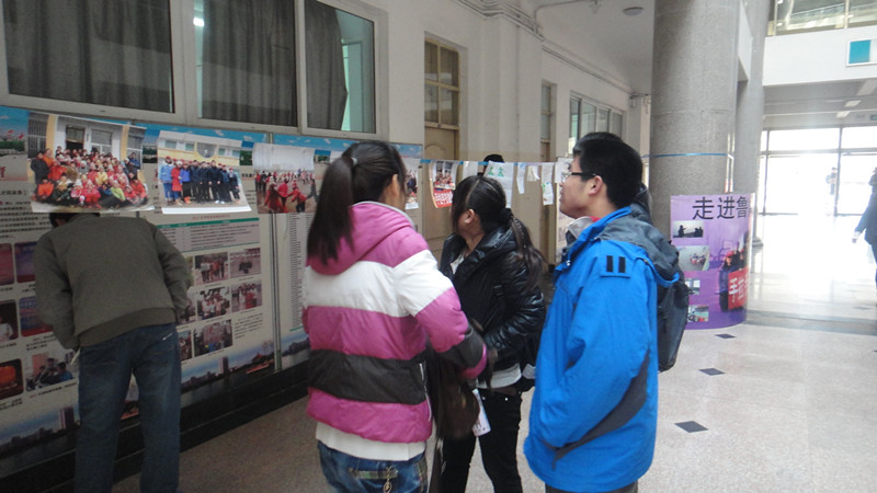 图片展记录了寒假支教活动的全过程,反映了当地学校和农村的艰苦条件和山区孩子们学习的不易,展现了支教队员苦中作乐的生活点滴和同孩子们在一起的快乐回忆。破旧的书桌,简陋的教室,支教队员坚持在志愿服务的前线;皴裂的脸颊,冻坏的小手,挡不住孩子们渴望知识的眼神。展览中,同学们被孩子们渴求知识的热情所感动,纷纷驻足观看。