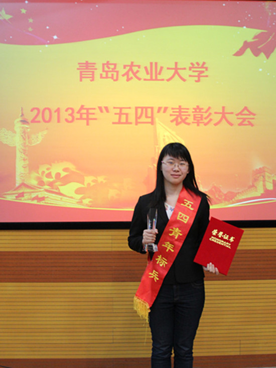 ◆积极参加各项校园文化活动并获奖:获全国大学生英语竞赛青岛农业大学赛区一等奖、二等奖;英语优秀生单项奖励;建国六十周年知识竞赛优胜奖;校学生会会徽设计二等奖;“肩负光荣使命,争创青春业绩”征文优胜奖;世界水日手抄报设计二等奖。