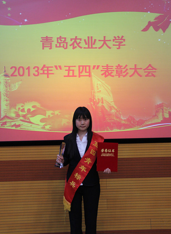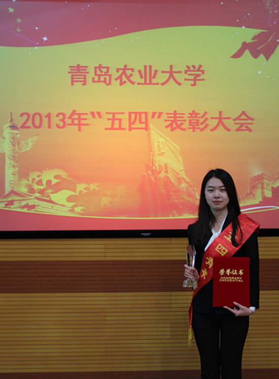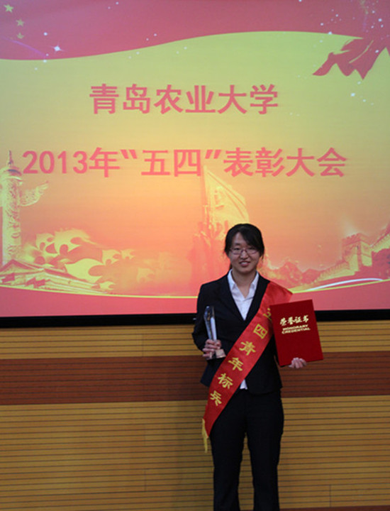 ◆积极参加各项校园活动并获奖:获2010年全国大学生英语竞赛青岛农业大学赛区一等奖;“赏小笔记,学真风采”学生笔记展示大赛优胜奖;第四届大学生社团文化艺术节文化沙龙系列活动一等奖;“校园之声”广播电台主题征文校级二等奖;全国大学生英语竞赛青岛农业大学赛区三等奖;“岛城先锋之歌”歌咏比赛三等奖;“肩负光荣使命,争创青春业绩”辩论赛团队优胜奖及“优秀辩手”称号;“重温经典,与先哲对话”主题征文三等奖;“感悟生命,秀出青春”征文比赛一等奖;“和谐友善幸福”征文比赛最佳作品奖。