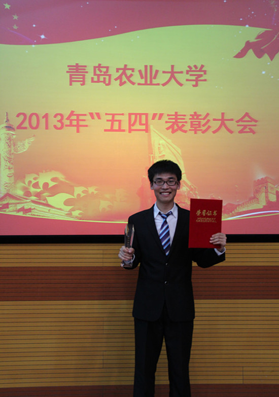 ◆连续三年获一等专业奖学金,综合素质测评优秀;连续两年获国家奖学金;先后获得校级“三好学生”、“优秀团员”、 青岛农业大学“十大优秀学生”荣誉称号;以优异成绩顺利通过英语四六级考试和计算机国家二级考试。