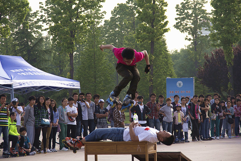 来自山东省内不同地区的轮滑爱好者齐聚青岛农大,共同竞争比拼。我校