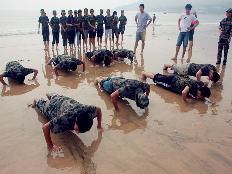 金色的阳光洒在柔软的沙滩上,海浪轻轻抚摸着这片浴场,队员们就在这样一种美好的环境下开始了今天的拉链拓展活动。首先,倪壮队长带队围海边进行跑步热身。随后,队员们在沙滩上体验常规训练,包括集合、报数、军姿、停止间转法、齐步、踏步、正步等训练项目。训练有素的队伍赢得了海滩上游客的驻足观看,海边喊响的口号更是有一种别样的力量与信念。一个半小时后,训练部分结束,王光炬老师对训练情况作了总结,并宣布海边拓展活动正式开始。