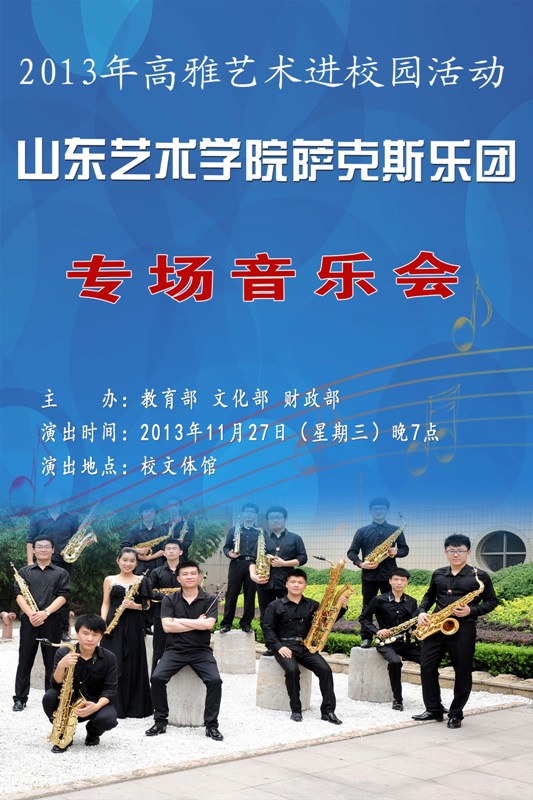 活动预告:2013年高雅艺术进校园——山东艺术学院萨克斯乐团专场音乐会