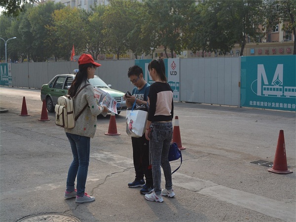68名志愿者分成4支小分队,大家精神饱满,统一着装,分别前往青岛城阳大润发、国货、家佳源、宝龙商场附近开展义卖活动。队伍中,带着青春的朝气的2014级新生成员格外引人注意,成为“义卖大军”中最积极的靓丽的风景线。易玉婷和舍友杨琳是队伍里“积极分子”,拿着忙活了一个多小时募集的53块钱,她激动地说:“起初义卖被拒绝,心里很不好受,想起学长说的‘我们是在做公益活动,是在做好事’心里就自信了好多,多一份勇气,多一份努力,孩子们说不定就多一个练习本。”此次义卖所筹集的善款将全部购置学习用品,送给