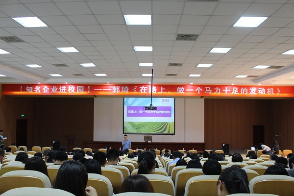10月11日上午,企业文化进校园系列活动在青岛农业大学学术会馆举行。联想集团佳沃现代农业有限公司总经理郭琦先生受邀作了题为《在路上,做一个马力十足的人》的主题讲座。本次活动活动吸引了300余名学生积极参与。