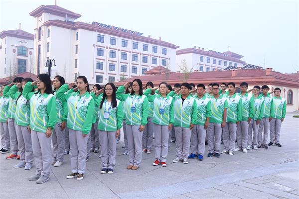 活动伊始,志愿者领队张照辉老师致辞,他回顾了“九一八事变”的沉痛历史,倡导大家热爱和平,勿忘国耻,背负起建设新中国的重任。随后,青岛农业大学国旗护卫队队长杨莹带领全体志愿者跑步、站军姿、踢正步、进行宣誓仪式等,以此进一步激发同学们的责任心和爱国心,牢记九一八的历史教训,肩负起时代的重托。志愿者们以洪亮的口号、整齐的队伍、坚定的誓言,彰显铭记历史、保卫祖国的决心。据了解,18日晚,休体大会志愿者临时团支部将在志愿者入住处组织世休会志愿者观看爱国主义影片。
