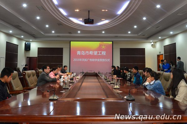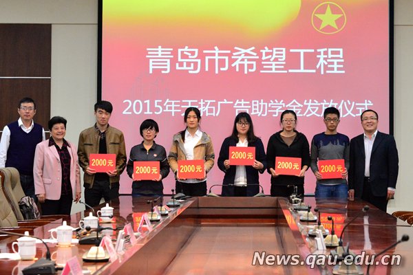 青岛农业大学党委副书记刘国秋、团市委副书记张海军、青岛天拓世纪广告设计制作有限公司副总经理姜刚、青岛大学团委书记张守珩和青岛农大团委书记初磊共同出席发放仪式,仪式由团市委统战部部长韩昌丽主持。