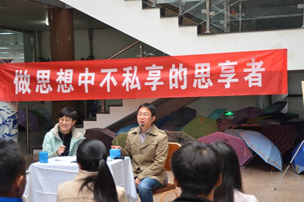 11月13日,思享读书会在图书馆一楼大厅举行新学期首期“阅读交流会”活动。围绕“读史改变我们”的话题,校团委实践部部长王光炬、宣传部部长刘琨作为嘉宾,以对谭的形式畅谈阅读之乐,与同学们一起探索历史阅读给青年人带来的影响。