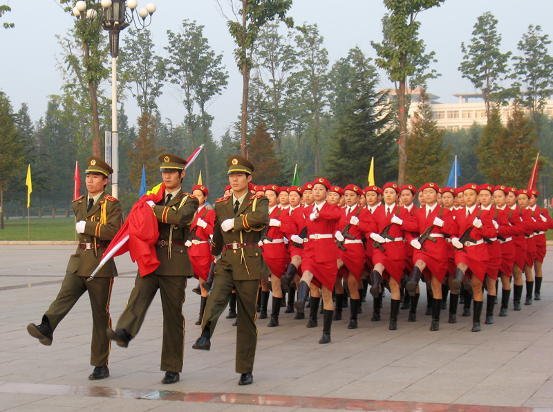 6时30分,升旗仪式正式开始。晨曦中,飒爽英姿的国旗护卫队,迈着整齐的步伐,护送国旗走向广场升旗台。雄壮的《义勇军进行曲》响起,随着一声铿锵有力的“敬礼”, 鲜艳的五星红旗在现场所有人庄严的注视下徐徐升起,高昂的国歌响彻整个校园。