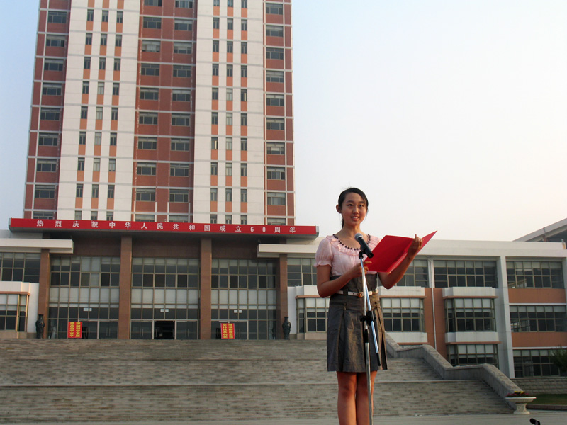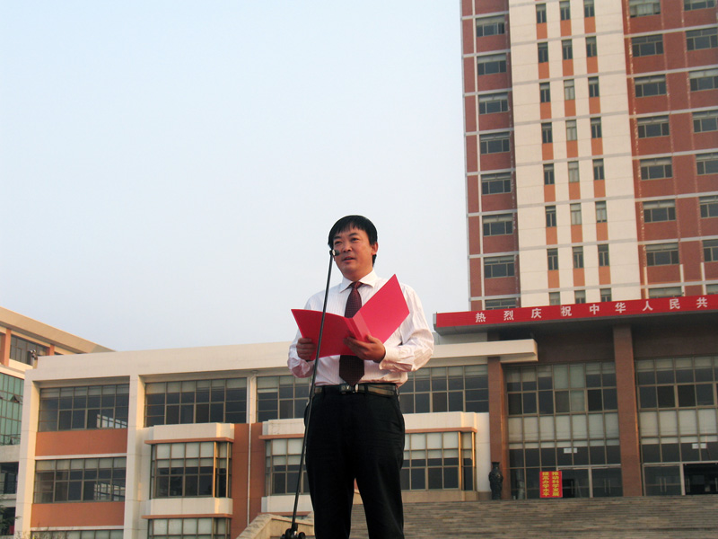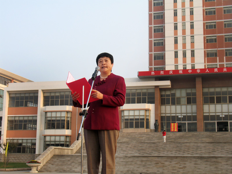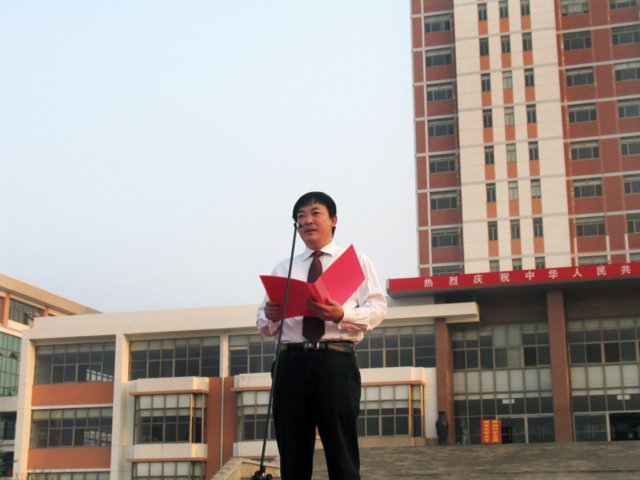 校纪委书记刘国秋讲话。她说,60年前的今天,当第一面五星红旗在天安门广场升起之时,我们敬爱的毛主席向全世界宣告:中华人民共和国成立了,中国人民从此站起来了。掌握了自己命运的中国人民,焕发出前所未有的创造活力,使昔日积弱积贫的中国旧貌换新颜。建国60年来,在中国共产党的领导下,全国各族人民团结一心,艰苦奋斗,励精图治,各项事业不断推进,中华大地发生了翻天覆地的变化。我们伟大的中华民族已经扬眉吐气地昂首屹立于世界民族之林。