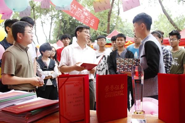 杨同毅兴致勃勃的参与了社团的互动活动,在茶文化协会前和同学们一同品茶、在书画协会和骨干会员一起切磋中国书法、在羽毛球球协会前比赛发球技巧。一上午时间,杨校长走遍了每一个社团展位,详细咨询了每一个社团的建设情况,对ERP社团等一些获得优异成绩的协会提出了表扬,并对一些社团的发展提出了许多宝贵的建议。杨校长肯定了社团活动在学生成长过程中的重要作用,谈及丰富的社团文化生活对青农学子的成长有什么重要意义时,杨校长说:“我们在人才培养中提倡,第一课堂的专业学习应与第二课堂活动紧密结合。一个全面发展的人需要综合素质的提升,专业学习是基础,丰富的社团活动能够促进学生精神、能力上的发展。希望更多的同学参与到社团活动中来,提高能力,丰富人生。”在社团的选择上他也提出建议,一要充满激情,二要遵循理性,不断提高参与社团的目的性,这样才能更好地锻炼自己。