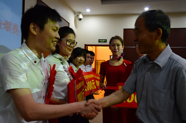 仪式上,原永兵为志愿者颁发了2000元奖学金和荣誉证书,学生工作部肖传强部长宣读了《关于授予丛晓丹等7名同学“毕业生志愿服务西部奖学金”的决定》,志愿者代表化学与药学院韩凯同学发言,代表7名志愿者向母校做出了保证,始终牢记“厚德、博学、笃行、致远”的校训,在志愿服务期间,绝不辜负学校领导的嘱托,切实履行自己的承诺;同时也表达了投身西部,奉献青春的决心。