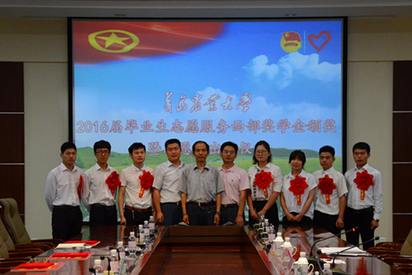 6月24日上午,青岛农业大学2016届毕业生志愿服务西部奖学金颁奖暨志愿者出征仪式在学术会馆会议厅举行。副校长原永兵出席仪式并为志愿者颁发奖学金和荣誉证书。出席仪式的还有学生工作部、团委领导老师以及各学院团委书记。仪式由校党政办主任、校团委书记初磊主持。