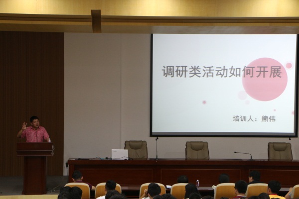培训伊始,熊伟老师将“调研活动如何展开”这一培训内容分为三方面:1、为什么调研2、调研的阶段3、注意的事项。随后,熊伟老师指出调研的重要性,以及正确、好的调研结果对社会、对国家的影响。在调研阶段,调研分为准备阶段、开始阶段、调研阶段三阶段。熊伟老师从准备阶段的如何选题、题目的延展性、研究性、前期调查资料的准备、对资金、人员等合理的前期安排到在开始阶段如何解决一些常见问题、如何有效地与当地合作者联系、沟通,再到调查阶段的调查方式、个人形象、调查记录、调查心态等做了详细的介绍。