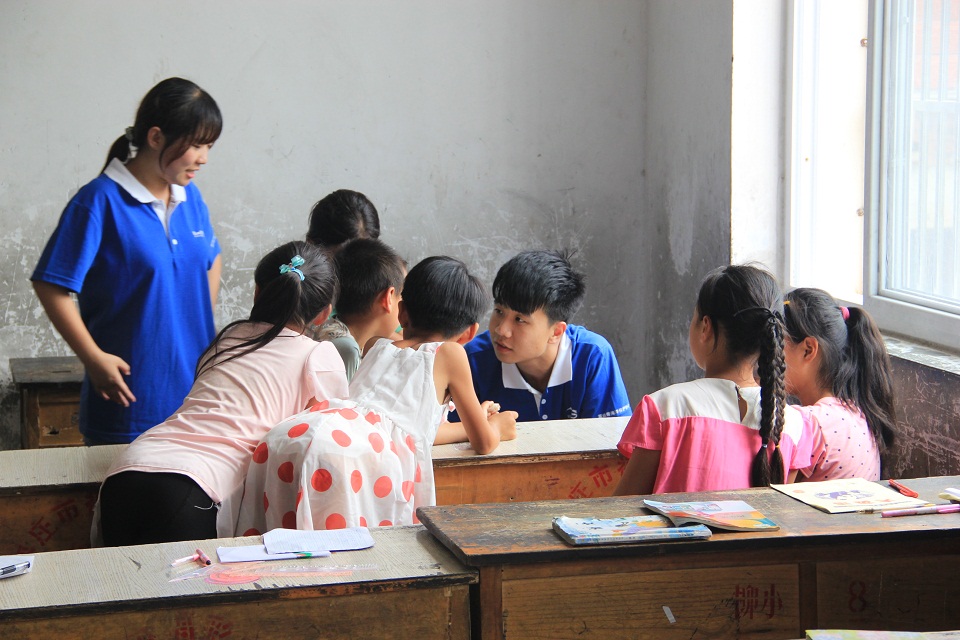 7月31日,青岛农业大学青春健康同伴社会公益服务团的志愿者们来到明德小学,服务团的志愿者分为两部分,一部分志愿者与支教队队员进行了支教经验交流。另一部分志愿者则在教室中以游戏的形式给孩子们进行生活常识普及和课外知识扩展。