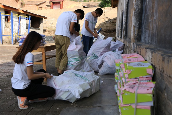 8月10日,青岛农业大学手拉手义务支教队甘肃小分队在甘南藏族自治州化旦尖措孤儿学校举行青岛市华泰公益基金会“点对点”志愿者孵化圆梦项目生活物资发放仪式。