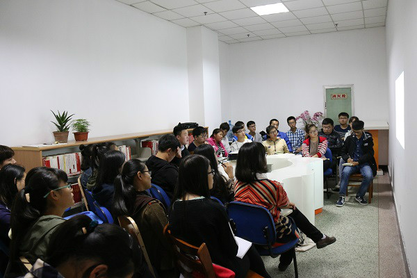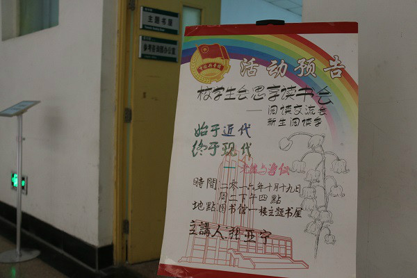 门外的宣传海报、屋内的热烈交流,吸引了不少过往的老师、同学们的积极参与。理信学院的刘永萍老师也来到了交流会的现场,参与活动后表示愿意与思享读书会合作,为自己班的同学来一场“班级定制”。