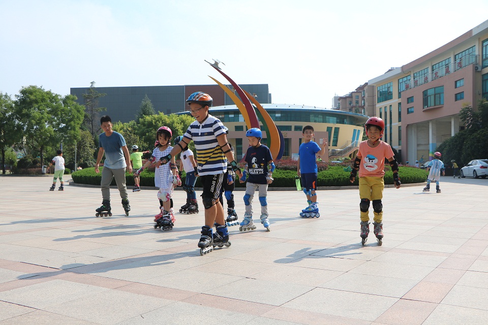 城阳实验中学四年级的王道同学在一次轮滑课中十分开心的对记者说道,自己在轮滑协会的支教队员的认真教导下,已经学会了轮滑的基本知识。“经过一个学期的练习,我已经基本能够掌握动作了。”