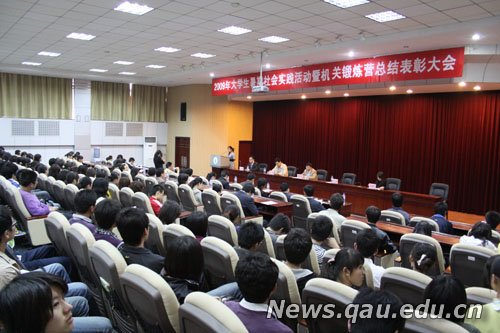 月23日下午,青岛农业大学2009年暑期社会实践活动暨机关锻炼营总结表彰大会在信息楼六楼报告厅隆重举行,校团委书记慕乾伟、城阳团区委副书记陈超、校团委副书记张丽出席会议并为获奖集体和个人颁奖。慕乾伟在大会上的讲话中回顾了今年暑期大学生社会实践活动的开展情况,总结了活动开展的经验,同时也指出了活动中存在的不足并对下一步如何开展好社会实践活动提出了希望和要求。他希望各团总支加强领导,着眼长远,培育特色,不断创新机制,认真组织好每一次社会实践活动,在全校形成“人人知实践,人人想实践,人人去实践”的良好氛围;希望全体同学按照胡锦涛总书记提出的把实践作为成才必由之路的要求,积极参与社会实践,积极提高自身素质,为学校发展和全面建设小康社会奉献自己的力量。