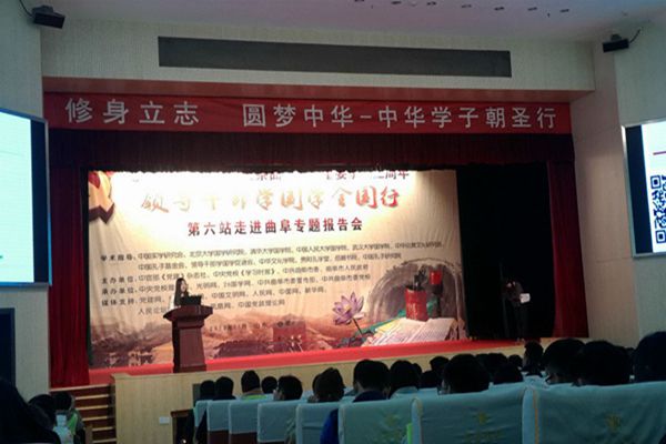 仪式结束之后,我校师生参观了优秀传统文化教育基地孔庙、孔府、孔林,现场体验和感受儒家文化的博大精深和中国传统文化的独特魅力。在随后举办的“修身立志,圆梦中华——中华学子朝圣行”讲座上,孔子研究院儒学会馆主任李文文发表了《与经典结缘,长养生命的灿然》的精彩演说,同学们受到了思想和精神的洗礼,收获颇丰。在最后,我校郭艺同学作为本次活动的学生代表发言,谈及了此次参观学习的感受以及对传统文化的认识,并表示在我们应当从民族精粹中汲取源源不断的能量,恪守传统文化当中的礼义廉耻和高洁品质,传承优秀传统文化当中的民族精粹,点燃中华民族砥砺奋进的盏盏明灯。