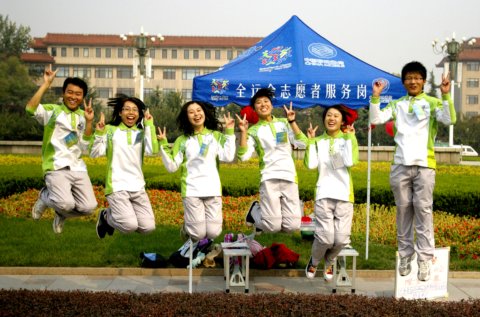 在流亭机场,在城阳区各主要街道、景点,活跃着这样一群年轻人:他们在忙碌着维护交通秩序,他们热心地引导乘客文明乘车,他们尽心地维持着街道的卫生清洁,他们热情地解答游客、路人的疑问……,精美的手绘地图、火红的中国结、温馨的许愿墙,捧出的是一颗颗火热真诚的心;温情的问候,体贴的服务,绽放的是一张张青春灿烂的笑脸。他们就是青岛农业大学服务十一运会的33名城市志愿者大学生。