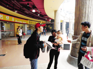 大学生志愿者昨在城阳宝龙广场五四广场卖晚报4100份
