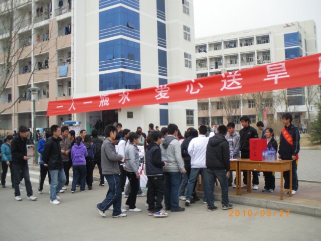 西南大旱,爱心牵盼。3月27、28日,青岛农业大学团委、学生会、滇澜协会积极响应团省委号召,携手在校园里开展了“一人一瓶水,爱心送旱区”募捐特别行动,两天来募集到钱款20173.9元,该款项将按团省委要求统一汇入山东省青少年发展基金会账户。