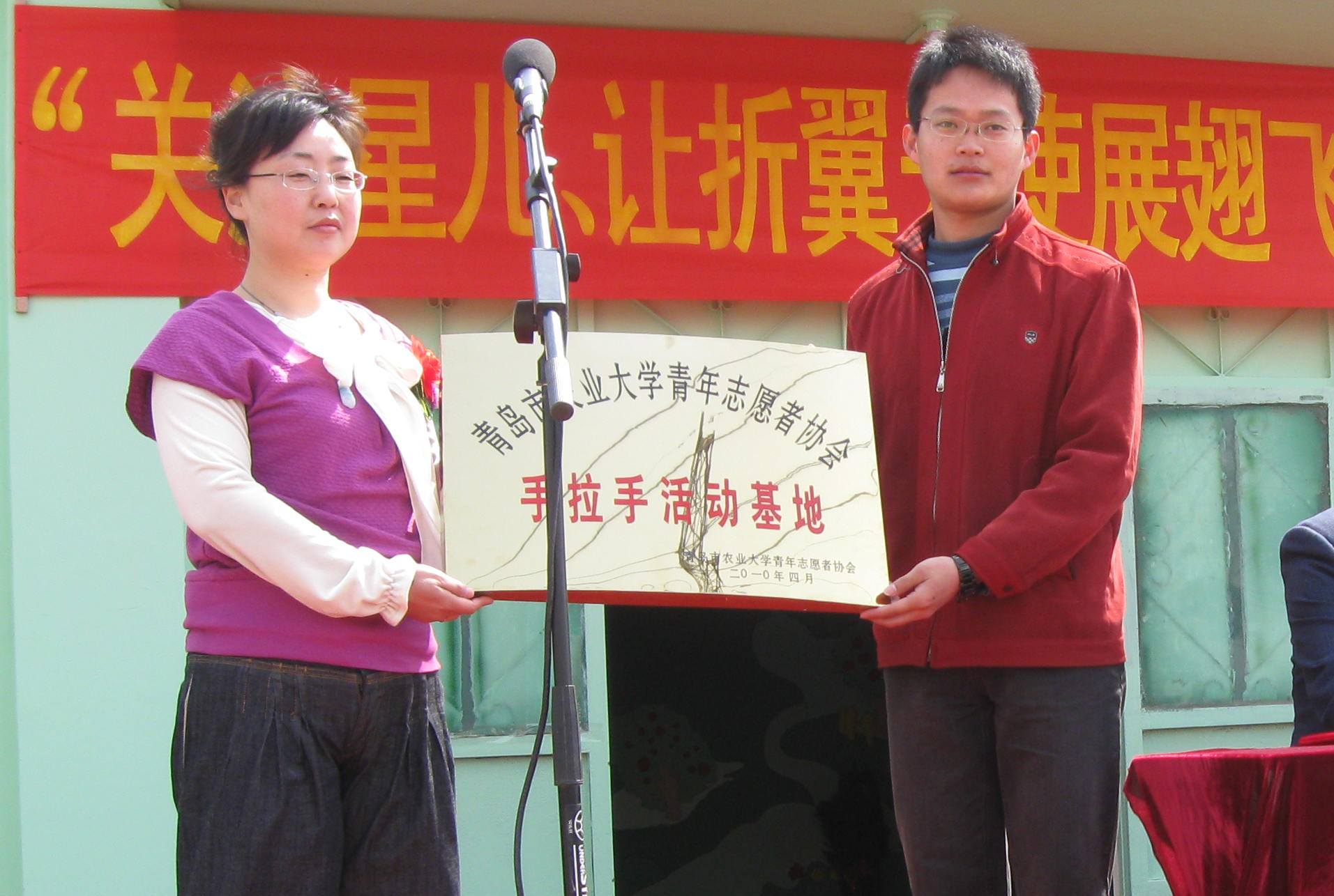 4月2日,是第三个世界自闭症日,当日,城阳区圣之爱康复中心举行揭牌仪式,仪式上,“青岛农业大学青年志愿者协会手牵手活动基地”同时在圣之爱康复中心揭牌。