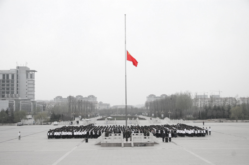国务院决定,为表达全国各族人民对青海玉树地震遇难同胞的深切哀悼, 4月21日举行全国哀悼活动。清晨6时30分,我校师生集中在虹子广场,在举行庄严的升旗仪式后,下半旗向青海玉树地震受难者致哀。全体师生神情凝重,面对半下的国旗,一起为玉树遇难同胞默哀3分钟。