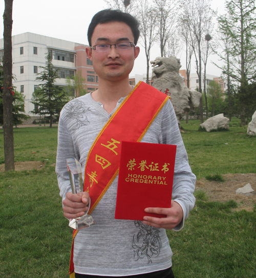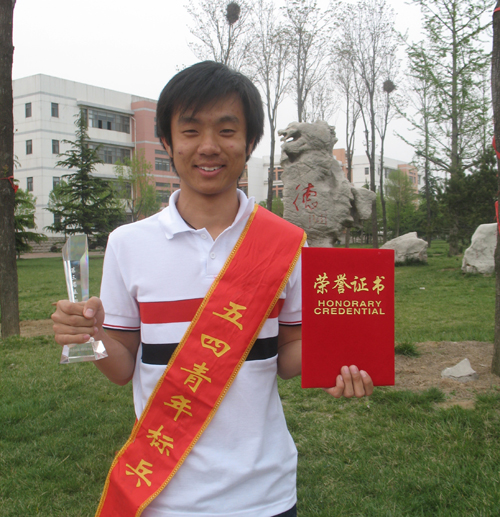 于兴凯,理学与信息科学学院信计07.1,中共党员,曾获得2010年美国大学生数学建模比赛国际二等奖;获全国大学生数学建模竞赛山东省一等奖;论文《运用数学建模知识对制动器试验台的控制方法分析》获得首届青岛市科技节科技论文大赛三等奖;获得2009年度山东省省级优秀学生;带领班级获2009年度省级先进班级、校级优秀班级;连续两年获得校三好学生、校优秀学生干部、优秀团员并获专业奖学金;2009年获得专业二等奖学金、六和奖学金、达克豪斯企业奖学金;获校暑期优秀社会实践报告三等奖;获第三届大学生社团文化艺术节数学建模比赛三等奖;2009年分管校数学建模协会,期间协会获山东省优秀科技社团提名奖、校十大优秀协会奖、第三届社团文化节优秀组织奖;获得第七届大学生科技艺术文化节奥运知识竞赛优胜奖、院一等奖;中英文翻译大赛院二等奖;家乡方案设计大赛院三等奖。