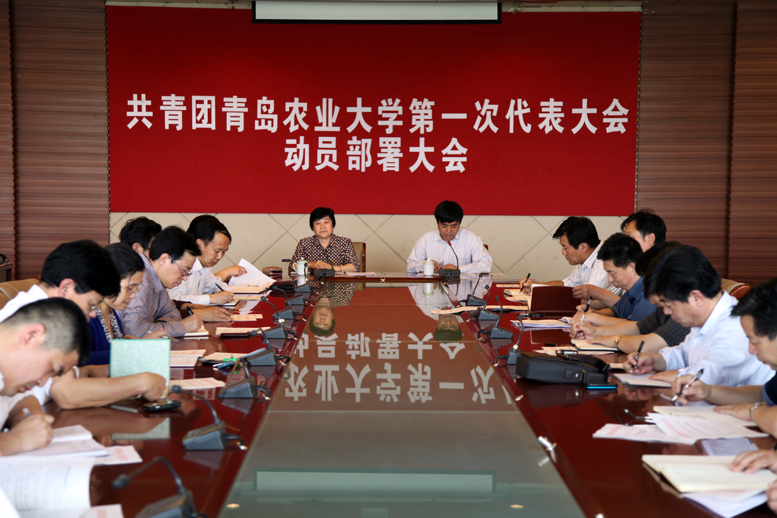 会上,学工部部长慕乾伟传达了校党委《关于同意召开共青团青岛农业大学第一次代表大会的批复》、《中共青岛农业大学委员会关于成立第一次团员代表大会筹备工作领导小组的通知》,宣读了《关于做好基层团组织换届选举工作的通知》;团委书记初磊宣读了《关于召开共青团青岛农业大学第一次代表大会的通知》。