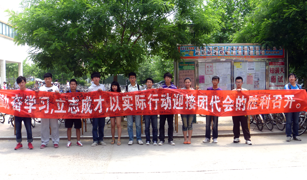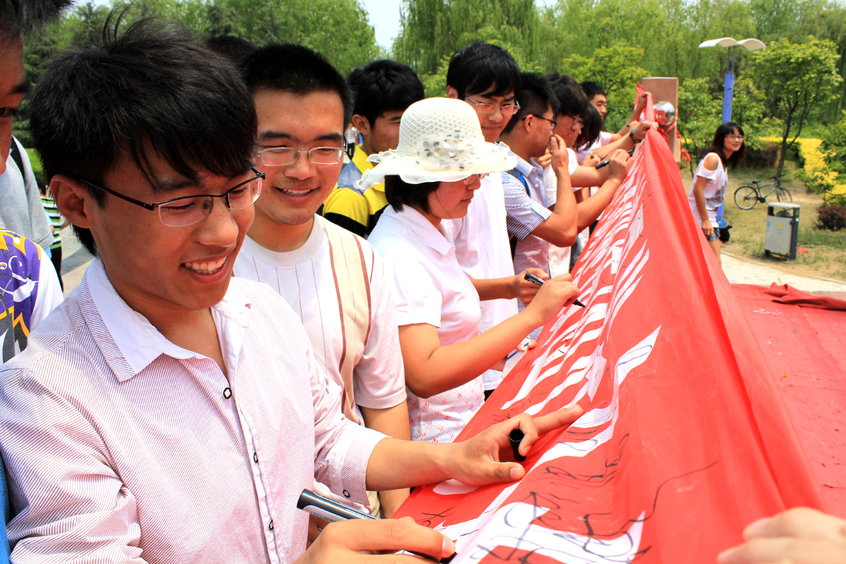 5月26日,为营造良好的迎接青岛农业大学第一次团代会的氛围,引导青年团员进一步明确责任,校学生会分别在知音广场、东苑三号楼前和西苑餐厅外同时举办了“勤奋学习,立志成才,以实际行动迎接团代会的胜利召开”主题签名活动,广大青年团员纷纷驻足,在签名条幅上郑重签下了自己的名字。