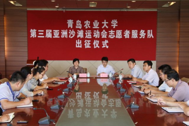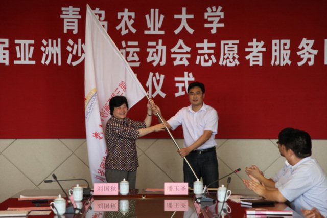 5月30日上午,青岛农业大学举行第三届亚洲沙滩运动会志愿者服务队出征仪式,热烈欢送即将奔赴亚沙会开展志愿服务的91名同学,党委副书记刘国秋为亚沙会志愿者服务队授旗,并向全体志愿者提出了殷切希望与要求。