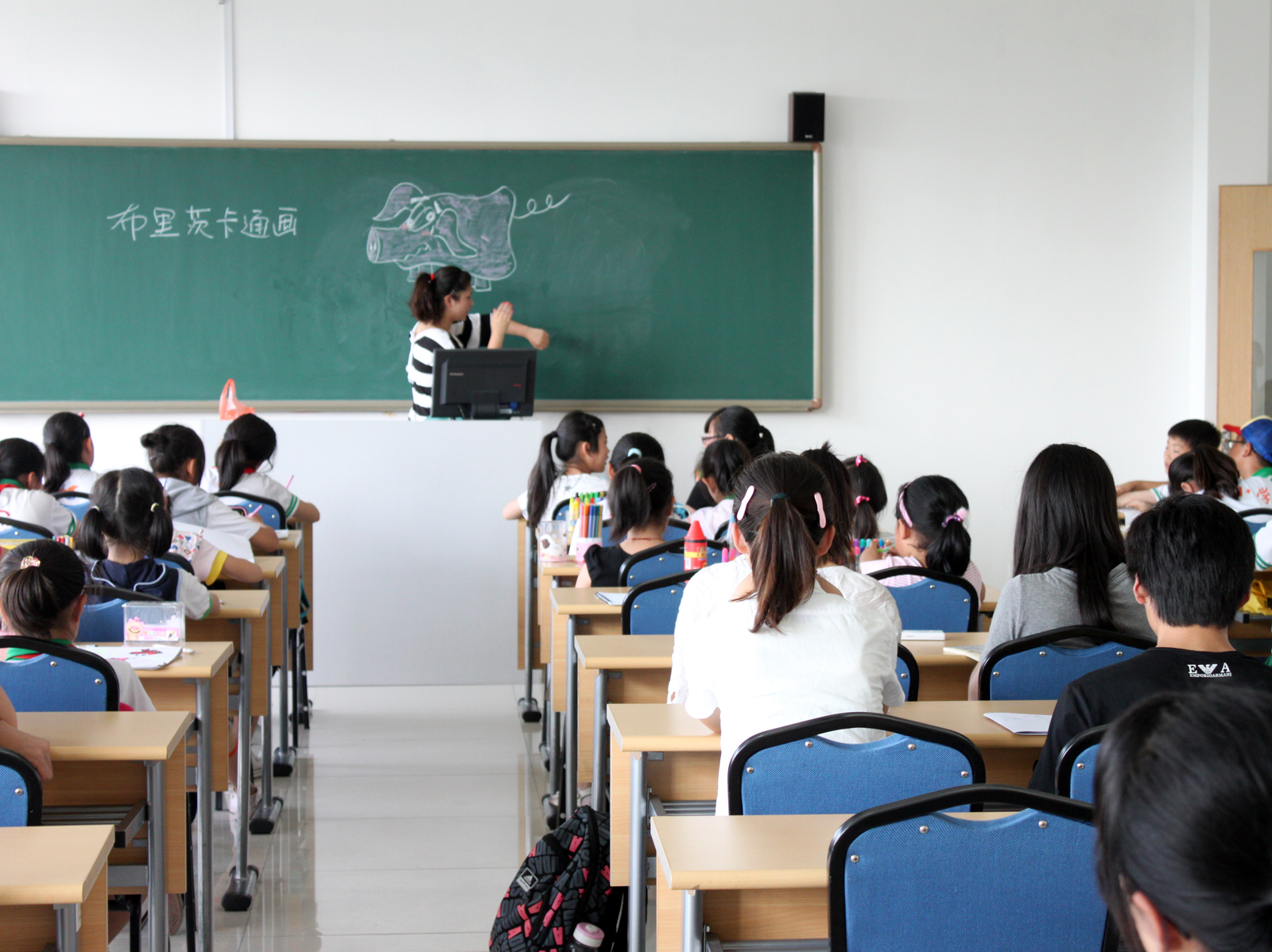 “一个大大圆圆的圆形……一个三角形……一个字母‘M’……”大学生“老师”在讲台上给小学生们讲起了“布里茨卡通画”,小学生们拿起画笔,稚气又认真的绘画感染了每一名志愿者,“孩子们只需要一点儿鼓励和学习就可以做的比我们想象中的更好”一名志愿者说。