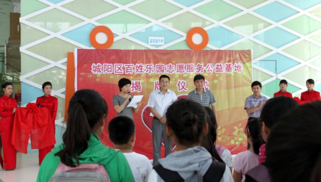 5月31日下午三点半,“青岛农业大学百姓乐园志愿者服务站”和“城阳区志愿服务公益基地”在城阳区“百姓乐园”同时揭牌,城阳区教体局党委副书记、纪委书记张明,城阳团区委副书记王芸竹,城阳区机关事务局副局长秦军,青岛农业大学团委宣传部部长张兴华共同为服务站和公益基地揭牌。简短的揭牌仪式后,来自青岛农业大学的15名大学生志愿者同来自城阳区实验小学的30余名小学生来到活动室,一起开展了“趣味美术”学习活动。