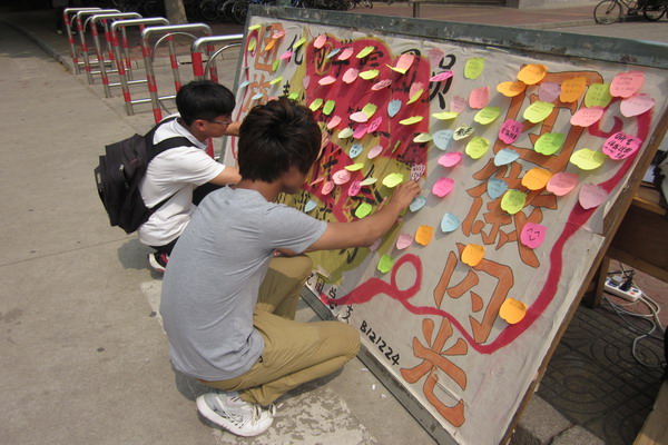 本次签名活动的主题为“勤奋学习、励志成长,以饱满的精神向第一次团代会献礼”,活动形式分为“签名承诺”和“寄语祝福”两个环节,广大同学踊跃参加,在写有“勤奋学习、励志成长,以饱满的精神向第一次团代会献礼”的横幅上庄重地写下了自己的名字,在鲜艳的便利贴上写满自己对团代会的祝福,以表示对我校召开第一次团代会的美好祝愿。