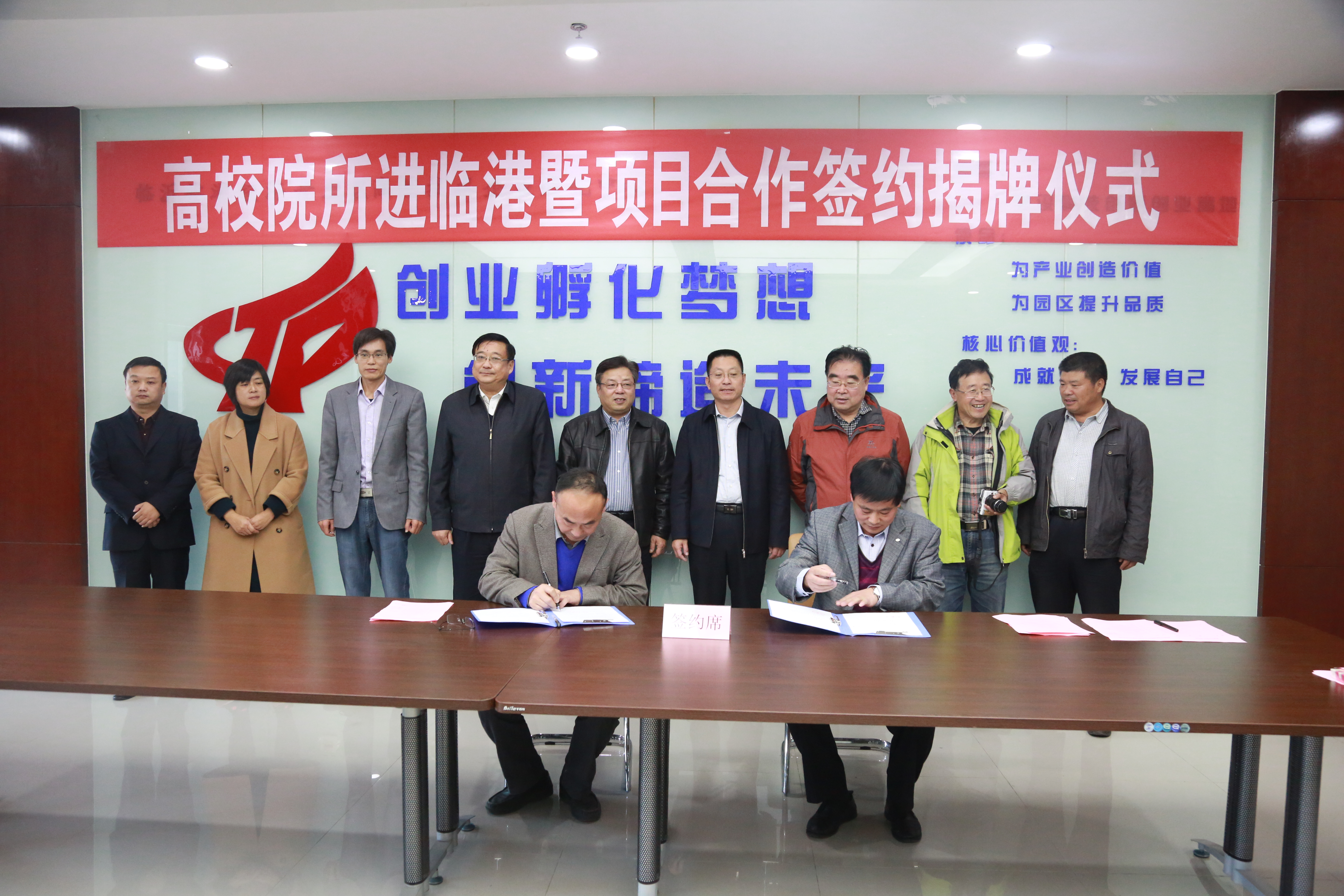 签约仪式由临港区高新技术企业孵化中心主任孙文彬同志主持。区党工委委员、管委会副主任周茂永同志致辞。周副主任介绍了临港区的发展历程和科技需求,对植物医学学院专家、教授的到来表示热烈欢迎,并希望以此为契机,青岛农业大学有更多的学院和专家教授进驻临港,为临港区生态农业快速、高效发展提供智力支撑。