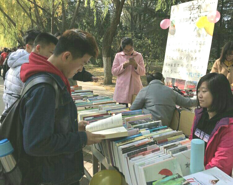 11月12日,青岛农业大学一年一度的图书漂流活在毓秀路两侧拉开帷幕,持续一天。外国语学院积极参与活动,共收集图书380册,借出100余册。